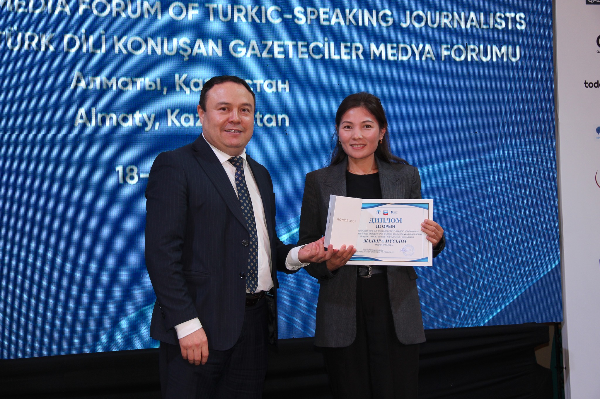 Алматыда VI Халықаралық түркітілдес журналистер медиафорумы аясында Түркітілдес журналистер қоры «Шеврон» компаниясымен бірлесе ұйымдастырған «Әлеумет — қоғам айнасы» байқауы мен Halyk Bank серіктестігінде ұйымдастырылған «Еркін сөз-2025» байқауының жеңімпаздарын марапаттау салтанаты өтті, деп хабарлайды Jurtmedia ақпараттық-сараптамалық порталы.